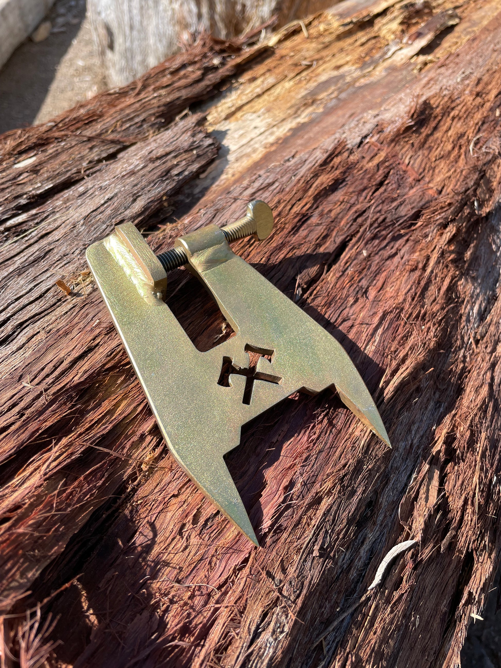 Hammer into log to clamp chainsaw bar for easy filing. Strong Bisalloy 450 - 5mm thick - zinc coated for long life. Tradesman built in Australia. Designed with sharpened extended legs for easier placement into log and more stability. Screw lock secures chainsaw in place enabling quick and easy chain sharpening. Fits all saws. Weight 284g125mm high and 77mm wide at widest pont.