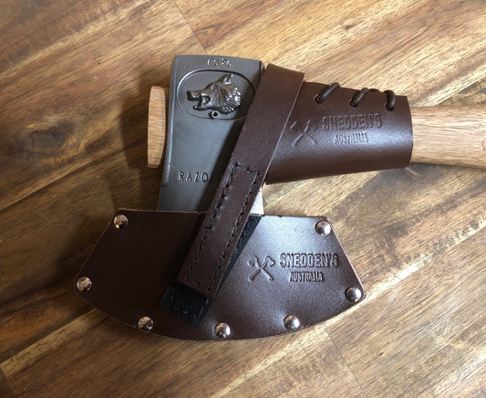 Razorback Hatchet handle protector. Tan leather DISCOUNTED DISCONTINUED COLOUR