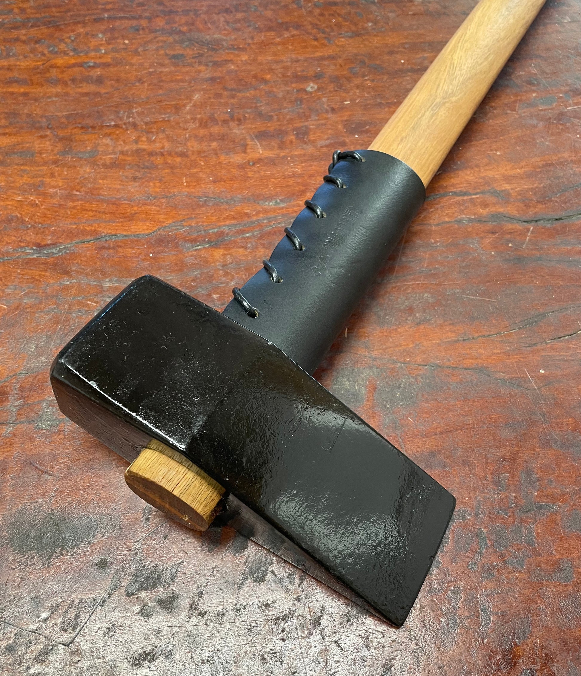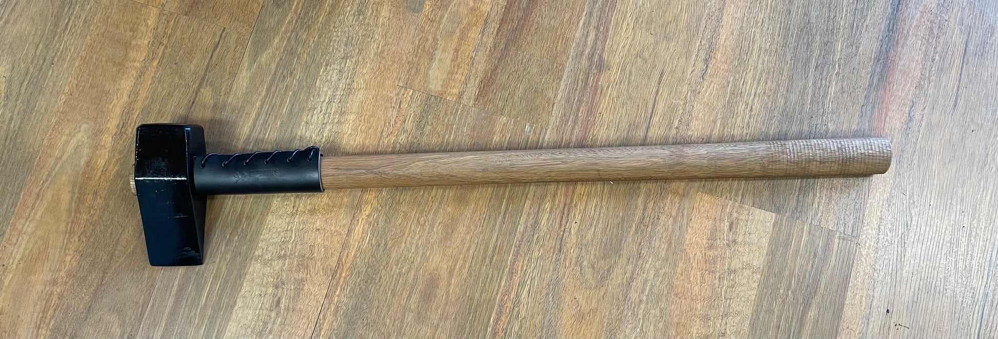 Reconditioned Unknown brand Blockbuster / firewood splitter on a Snedden 900mm spotted gum handle with textured grip and smooth oiled finish. Black gloss painted finish. Includes handle protector - no blade no cover.